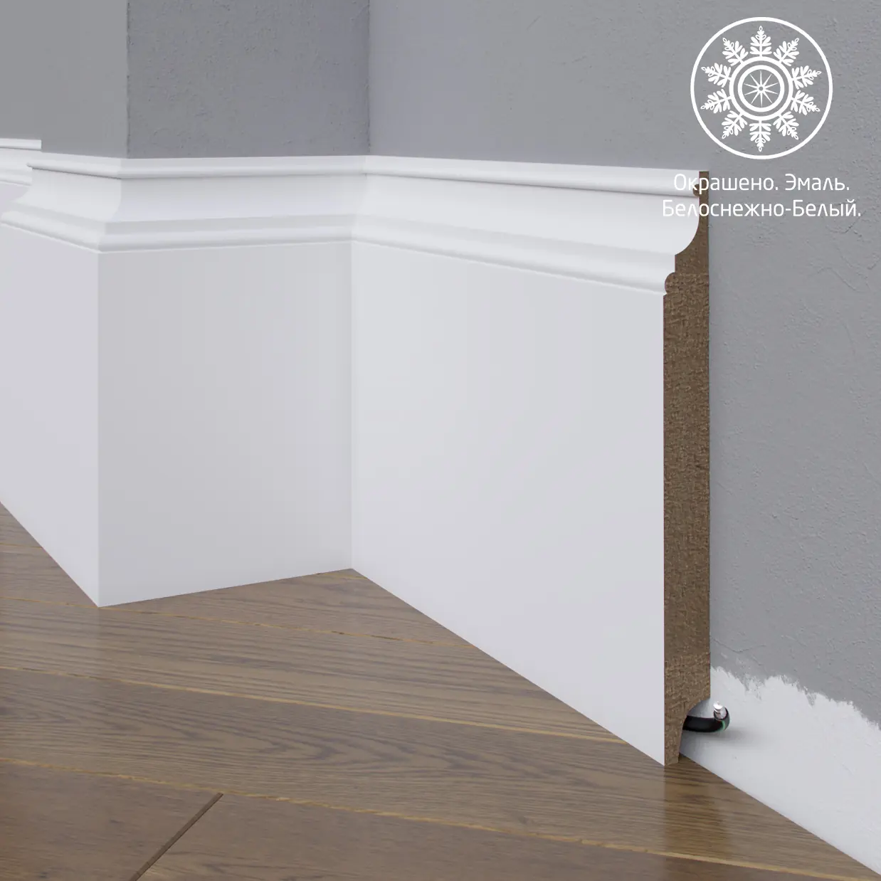 Белый плинтус - это идеальное решение для отделки интерьера вашего дома или офиса. Изготовленный из прочного материала - МДФ, он обладает высокой стойкостью к механическим воздействиям, что позволяет ему сохранять свой первоначальный вид в течение долгого времени.¶Плинтус окрашен полиуретановой эмалью, которая нанесена на загрунтованную в два слоя поверхность. Это гарантирует прекрасное покрытие и защиту от влаги. Белая полиуретановая эмаль придает плинтусу элегантный и стильный внешний вид, который гармонично впишется в любой интерьер.¶Благодаря использованию только качественных материалов, белый плинтус отлично справляется с задачей визуального обрамления стен и пола. Он добавляет завершенность и эстетическую привлекательность к любому помещению.¶Выбирая белый плинтус, вы получаете продукт, который не только прекрасно смотрится, но и обладает высокой долговечностью. Придайте своему интерьеру завершенный вид с помощью нашего белого плинтуса - и вы не пожалеете о своем выборе.